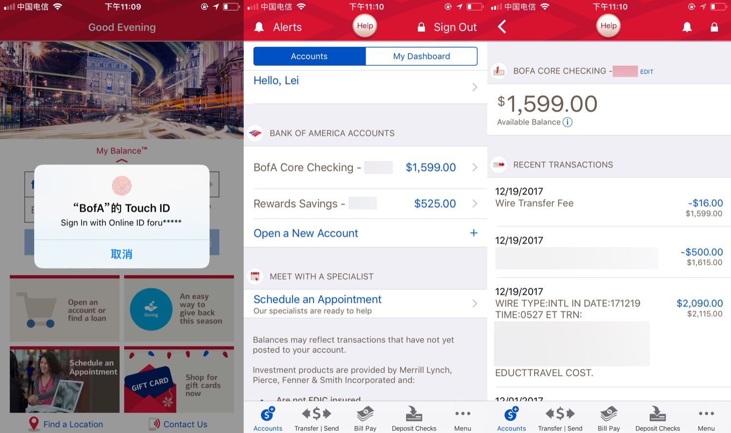 BOA在 Android 和 iOS平台上都有手机应用,相比国内银行的APP而言功能单一很多,比较让我满意的是都支持指纹登录,转账和查账也十分方面。 总结开户过程大概半个小时,基本就是填写个人资料,中途聊天得知,基本上每天都有大陆游客来这里开户办卡,她们也是轻车熟路了。BOA 开卡无难度,如果你有一些美元收入,转账,可以考虑办理一个。 ELSE:关于信用卡开卡过程中,Wang 女士问我们要不要办理信用卡,告知我们说我们也可以办理信用卡,但是需要押金当额度(最低 300 美刀),最多你也能放几万刀,一年内退还。考虑到不是经常来美国,加上美元还款也麻烦,就暂时没办了。 一些可能被问到的问题Q:办这个卡有什么用? A:收美元,其他用途如美股、iTunes 美区、美国网站购物等请自行搜索。 Q:我有必要办这个卡吗? A:对于99%的人没必要,对于境外消费,使用 VISA、Master 之类的信用卡而言更方便,但是,如果你有来自谷歌、亚马逊之类的美元收入,或者你经常有来自国外的汇款,那么相信你懂的。 Q:如何拿到一个美国有效地址的? A:我是寄到朋友家,朋友回国的时候人肉带回来的(相对转运、邮件而言安更安全) Q:可以寄到转运公司的地址么? A:不知道,理论上可以(反正银行不验证地址),但感觉不是很安全。 Q:我没有美国的电话,可以办么? A:去美国旅游建议还是办 ATT 或者 T-Mobile 的临时电话卡吧,100到200元人民币,有效期7到30天不等。 Q:美国留的电话是临时的,回国后有办法修改么? A:APP里面可以直接修改,回国后可以自行申请TextNow或者Google Voice(长期有效的美国号码),我现在就弄了一个GoogleVoice的美国号码,可以正常接收BOA的短信验证码(并且可以自动转发到 Hangout 环聊或者 Gmail 邮箱。 加入左罗TG群最近新开了一个Telegram电报交流群,发现还是电报群方便和自由,欢迎朋友们加入,群内有智能搜索机器人,直接提问就能搜索相关问题。 有问题在群里直接跟群友交流,也会更方便点,私信我反倒不一定有时间逐条回复。 (责任编辑:) |