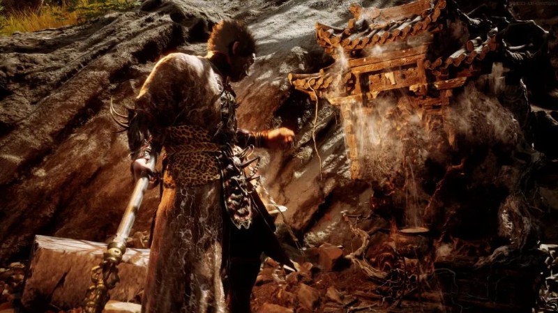 此外,游戏也有药材和丹药这种临时强化手段,例如第四个试玩场景里,玩家可以获得起码三种强大的丹药,分别可以强化主角的防御力、攻击力和恢复大量变身槽。 另外一个证明游戏里可能存在尚未揭晓资源的,则是道具界面里的“材料”和“细软”分类。正式版中,可能要么主角后面会解锁制作物品的能力,要么就是有大本营,里面有工匠类的角色。 总而言之,比起已经有较为细致展现的动作系统,关于《黑神话 悟空》的整体游戏系统,应该还有许多被游戏科学在试玩版里藏了起来,只能后续观望了。 关卡设计 试玩版中对于关卡的展示主要集中在第四个大场景——紫云山。本关的设计思路和同类作品相似: 主角一路上山,途经多个土地庙,找几条捷径,遭遇几种小怪和精英敌人,触发隐藏支线任务和BOSS,被“宝箱怪”阴,最终与关底BOSS对决。