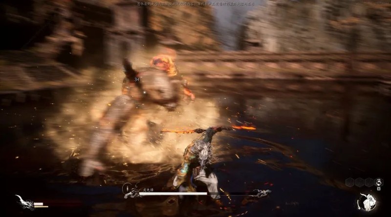 这个基本循环构成了本次试玩当中主角的大部分主要输出手段,在此之上,还有重攻击蓄力和法术、变身这样的补充手段,基本逻辑非常简单易懂,但是演出方面又并不含糊,甚至如果细抠使用细节还有诸多讲究,已然有了点易学难精通的感觉。 例如变身,试玩版中可以变成此前宣传片中的帅气狼人,该状态有单独血条和攻击模组。伤害高、韧性低,操作起来粘滞感较强,必须结合对敌人攻击动作的理解,找准间隙出手或者闪避,才能打出高伤害。