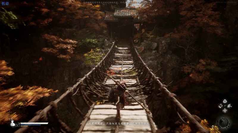 最令人讶异的是,游戏在开发层面上的完整和完善。 从试玩版的细节完善度来看,游戏科学没有贸然去对标某个标准或某个定位,而是在构建了符合现代化大型游戏开发模式的团队架构后,再用这种形式去全方位地推进开发进程,用一种“科学”的方式,做出了一款符合电子游戏制作客观规律的标准化作品。没有明显的偏科,没有片面过度投入而不自知的失衡,每一处呈现都有着合理的思考和周到的设计。 试玩概括 本次试玩总共有四段分割的游戏内容,互相独立,主角的状态也不继承,可以理解为是一个专门设计过,循序渐进的游戏试玩包体,这一点就很有现代标准大型作品宣传的风格。