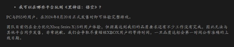 其实,回到xbox的问题上来,游戏科学的官方QA中也提到了《黑神话 悟空》的XSX|S版将会延期发售。而PC与PS5的用户,在2024年8月20日正式发售时即可体验完整游戏。至于延期原因写的已经非常委婉了:“团队正在全力优化Xbox Series X|S的用户体验,但距离达到游戏团队自身的品质要求还有不少工作没有完成。” XSX有着略高于PS5的性能,PS5能上,XSX肯定能上,那问题就出在XSS了。