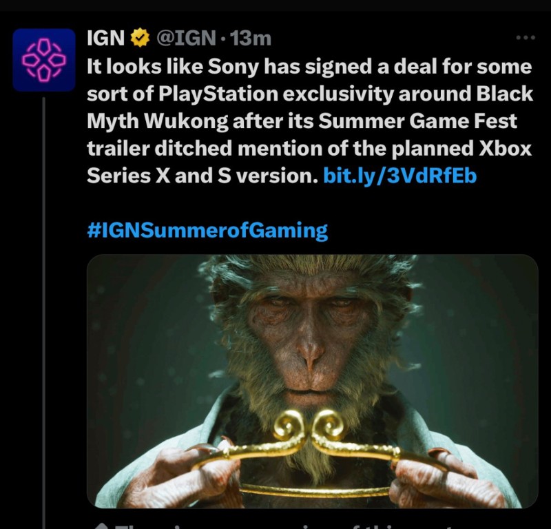 比较有意思的是,在黑猴子刚刚公布预购平台后,我们的老朋友IGN就开始来带节奏了——“不上Xbox是因为游戏科学跟索尼签了条约”,企图通过对立玩家来增加流量。 显然,理智的粉丝占领多数,IGN直接被喷到修改了新闻,最后直接删推了。