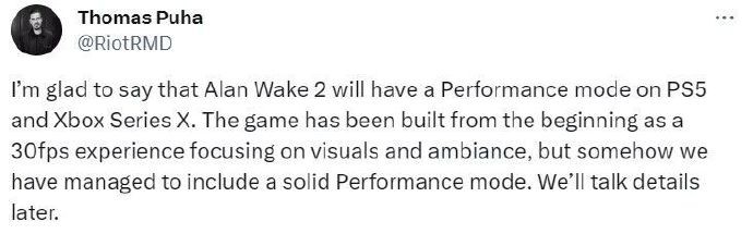 顺带还延迟了登陆XSX的时间,搞得XSX玩家怨声载道,买了个高性能主机甚至不能首发玩游戏,这谁受得了。 这类优化问题在近几年发售的游戏中非常普遍,此前《心灵杀手2》在PS5/XSX上将带有60FPS的性能模式但XSS没有。