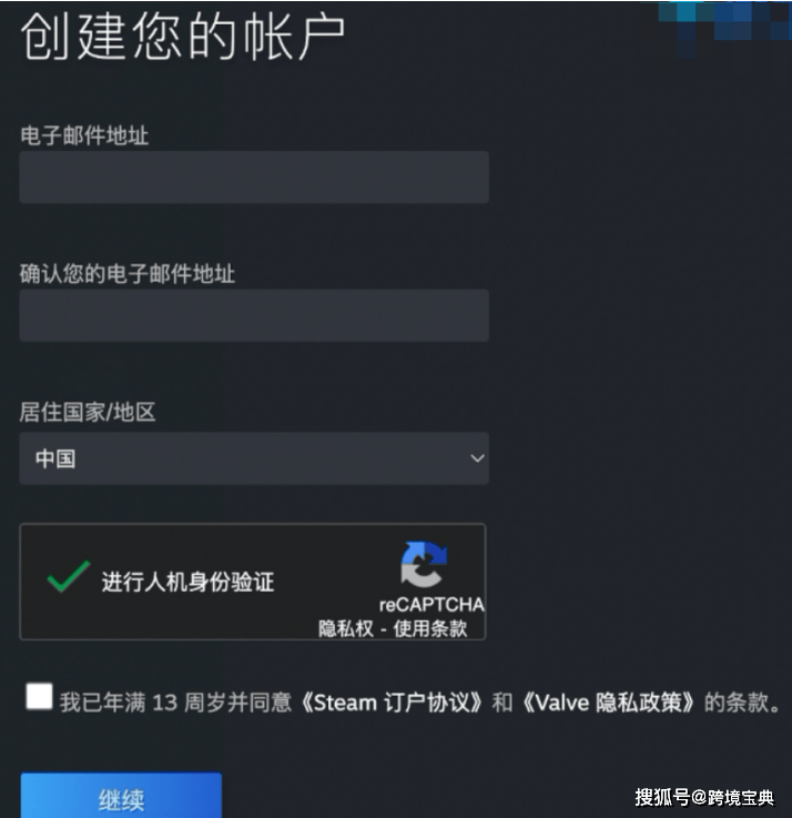 配置建议: 注册阶段建议锁定一个地区,不要频繁切换。 切换节点后建议清除浏览器缓存、重启浏览器再访问Steam。 尽量使用无痕/隐私模式注册。 步骤 3:进入目标地区Steam商店并注册 使用代理连接至目标国家/地区节点。 在浏览器中通过Steam官网 “加入 Steam” 链接。 注册邮箱:建议使用Gmail、Outlook 等稳定邮箱。 填写邮箱、勾选协议、完成验证码。注:如果IP仍是原地区,Steam 会自动将商店地区设为你的本地。 完成注册后,在账户详情中检查“商店和库的国家/地区”是否为目标区域。在“设置 → 商店和库的国家/地区”里点击“更改”按钮即可进行切换。 绑定手机和Steam Mobile App:提高账号安全性,降低未来跨区使用的风险。