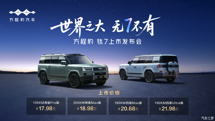 方盒子造型、超大空间、插混经济性,方程豹钛7用17.98万的起售价,精准击中年轻家庭的“悦己宜家”需求。