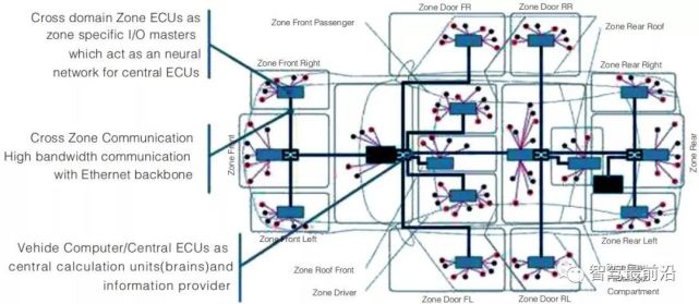 智能汽车电子架构研究现状 传统分布式汽车电子电气架构的设计 思想为硬件定义规格,欧博allbet硬件架构采用CAN总线网络和分布式功能单元,单功能单控制器,软硬件不能解耦,专用传感,专用控制器,专用算法。传统汽车电子电气架构面对汽车“四化”的挑战和需求难以支撑,汽车行业主要企业都给出了自己的解决方案,对未来智能汽车的电子电气架构进行了思考,提出了新型的汽车电子电气架构概念。 博世 博世作为整车Tire1供应商的重要代 表,提出了未来智能汽车电子电气架构的 演进方向(图 1)。从整个演进过程分为6个阶段:分布式功能模块、功能模块合并、多域控制器架构、功能域逐渐融合阶段、域融合终极阶段汽车大脑,最后远景云端计算阶段。 博世汽车电子电器架构的演进概念清晰指明了未来汽车电子电气架构算力会逐渐集中化,最终会发展到云端计算。当前架构主流处于功能模块合并阶段,正在朝多域控制器架构方向发展。 图1 博世汽车电子电气架构演进路线图 联合电子 联合汽车电子有限公司面向未来智能汽车,设计开发了扩展型域控制器平台, 将于2020年实现量产。联合电子设想未来汽车电子电气架构分为三层(如图2),欧博百家乐顶层为云服务平台,中层为计算与控制,下层标准化的执行器和传感器。中层计算与控制包括五个功能域的主控和以太网主干网、车载无线通讯共七个架构主要构成元素。联合电子面向未来智能汽车的架构思路为集中式域控制器架构。 图2:联合电子未来汽车电子电气架构 安波福 安波福提出了智能汽车架构的概念以适应自动驾驶的需求。针对未来的智能汽车电子电气架构,安波福提出了“大脑”与“神经”结合的方案(如图3)。其主要由三个部分组成,一是中央计算集群, 二是标准电源和数据主干网络,三是电源数据中心。安波福的智能汽车架构关注三大特性,一个是灵活性,二个是生命周期内持续更新性,三是系统架构相对容错性和健壮性。 图3 安波福智能汽车架构 丰田 丰田面对智能网联的新需求,丰田汽车设计了基于中央+地方(Central & Zone Concept)概念的电子架构(如图4),主要包括三部分:汽车大脑或中控ECUs负责计算和信息处理;跨区域通讯网络以车载以太网为主干网提供高带宽通讯能力;跨区域控制器作为某区域的输入输出主控单元,构建汽车中央计算单元的神经网络。 图4 丰田中央/地方概念的电子架构 特斯拉 特斯拉最大的特点了是实现了“软件定义汽车”,汽车向移动的智能终端进化。公开消息了解,特斯拉 Model 3的电子电气架构只有三大域:中央计算模块(CCM)、左车身控制模块(BCM LH)和右车身控制模块(BCM RH)。其中中央计算模块(CCM) 整合了信息娱乐系统(IVI)、辅助驾驶系统 (ADAS/Autopilot)和车内外通信三部分。 特斯拉的电子架构通过中央计算模块 (CCM) 对不同的区域控制单元及其部件进行统一管理,对传统汽车电子架构进行了全方位的创新,实现了“软件定义汽车”,加快了汽车产品迭代速度。该架构的好处显而易见:算力集中化、服务附加值提升、内部拓扑结构简化。 华为 世界智能网联汽车大会上(2019),华 为轮值董事长徐直军再次解读了华为汽车业 务,也再次解读了华为面向未来汽车的“计算+通讯”CC 架构(如图5)。华为提出的CC架构采用分布式网络+域控制器的架构,将车辆分为三大部分:驾驶、座舱和整车控制,并推出了三大平台:MDC智能驾驶平台、 CDC智能座舱平台和VDC整车控制平台。该架构可做到软件可升级、硬件可更换、传感器可拓展。 图5 华为L4级的自动驾驶汽车架构 分析以上6家智能汽车电子电气架构,可以分类为3种:博世和联合电子为基于功能域控制器的集中化架构;丰田和特斯拉为基于区域控制器和中央计算的架构;安波福和华为基于环形主干网和多计算中心的架构。 智能汽车电子架构分析 对智能汽车进行需求定义是架构开发的第一步,为了科学合理的进行架构设计,需从客户需求、发展趋势、目标市场、法规需求等方面收集并分析。从几方面分析未来智 能汽车电子架构基本需求包括高计算性能、 高通讯带宽、高功能安全性、高网络安全性、 软件持续升级更新能力等。站在整车厂角度, 还需具备有效的变形管理,实现相同架构平台下车型谱系间硬件配置灵活多样,具有很好的沿用性和平台公用性。以CAN总线网络为基础的架构已支撑汽车电子架构平台10年的功能需求,汽车网络为了适应智能汽车的发展需要正面临着技术的革新(表1)。 表1 智能汽车电子架构的主要需求汇总表 有效的电子电气架构开发评估体系是确保架构开发更加科学合理的重要手段。对于架构的评估,一般从三个大的层面分析:首 先架构能否满足用户使用需求及未来可能的需求变化;其次架构能否实现车型开发成本最优;再次是兼顾用户需求、开发成本最优的同时,能否满足汽车本身性能配置。 本文从以下7个方面评估了上述几种面向智能汽车的电子架构(表2)。 表2 智能汽车电子电气架构评估表 随着汽车科技的进步,围绕“四化”的需求越来越多,智能汽车电子架构将发生变革。面向未来智能汽车的基于功能域控制器 集中化的架构、基于区域控制器和中央计算的架构和基于环形主干网和多域计算架构的方案都是可行方案。满足L2/L3等级高级驾 驶辅助功能需求的集中化域的电子电气架构将成为主流解决方案。在