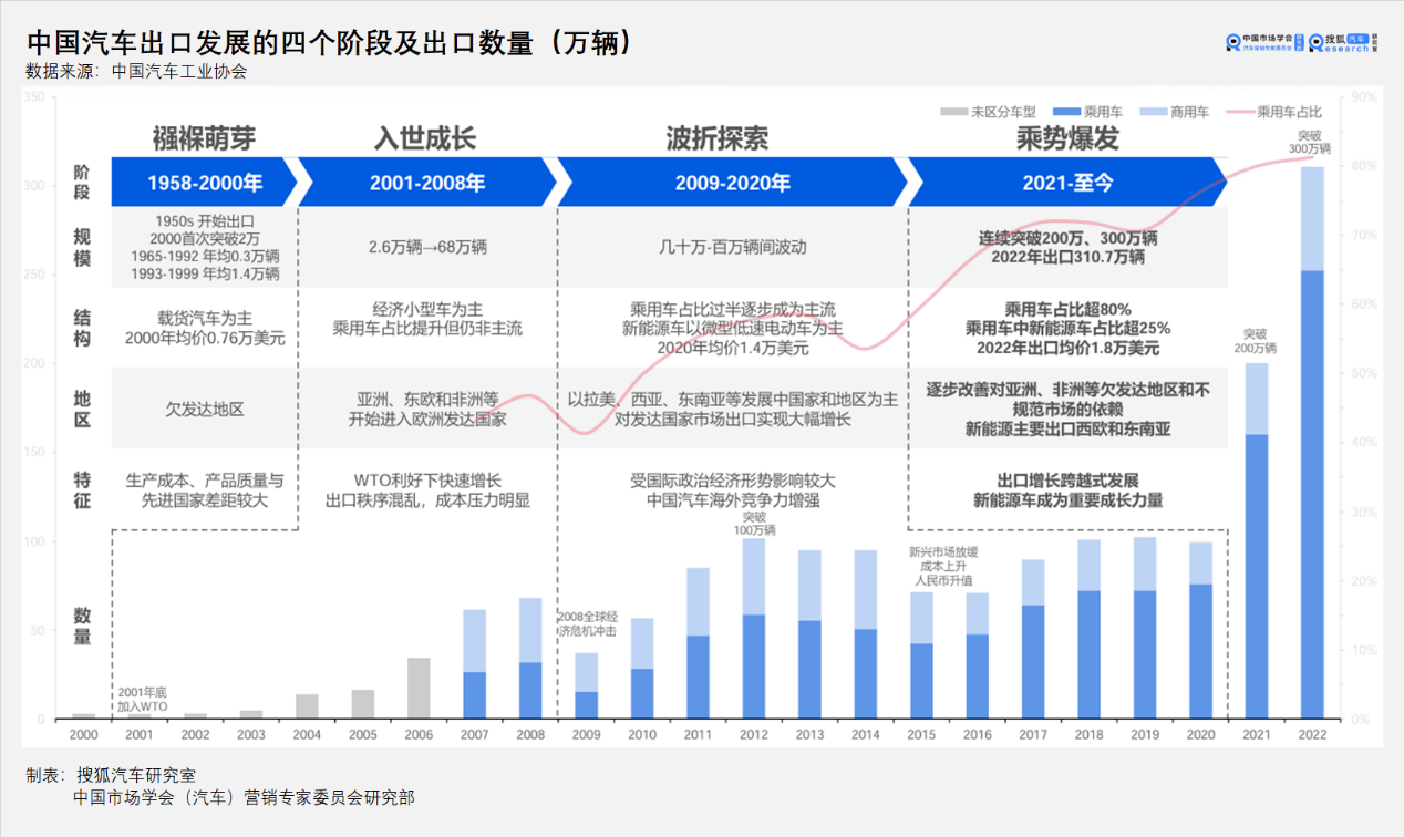 从产品本身来看,汽车产品经历了诞生之初的奢侈品时代、1910-20年代的标准品时代、1970-80年代的标准品时代、2000-10年代的消费品时代,即将进入中国引领的科技品时代; 从中国汽车出口的阶段性来看,从2021年开始,中国汽车正在进入爆发期,出口数量和出口质量都有明显提升。 然而,站在全球视角,各个区域市场有其独特的特征和需求,并非是中国市场的翻版和降级。王俊曾对其做出一个判断:“全球化最难的是跨文化管理。我们更看重长期化、本地化,能够为当地用户提供什么样的价值。”这一表述也再次强调了本土化的重要性,以及将其体现在海外发展目标中。 2023年4月,长安汽车发布海纳百川计划,制定了“四个一”的海外发展目标。目标内容指出,到2030年,长安汽车海外投资突破100亿美元,海外市场年销量突破120万辆,海外业务从业人员突破10000人,将长安汽车打造成世界一流的汽车品牌。