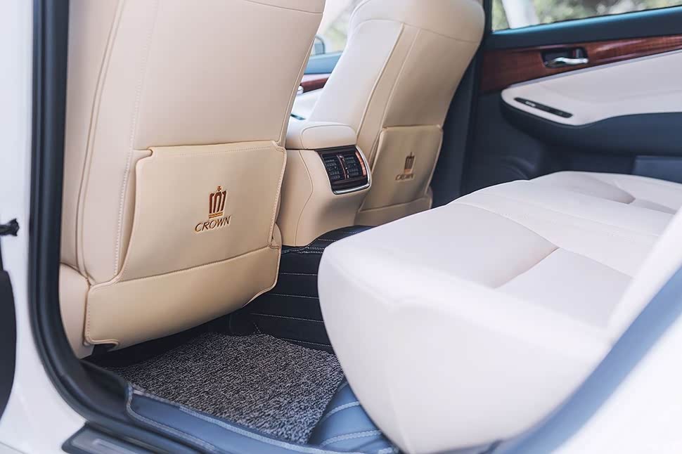 汽车的内饰 内饰:皇冠的内饰较为老派,中控是由上下两个屏幕组成的,上方主要是多媒体操作,下方则是空调及驾驶模式,储物空间中规中矩,扶手箱可以左右两边打开,较为人性化,整体做工比雷克萨斯差,开了几个月,obd附近塑料板有一处异响,通过垫隔音棉解决,其他模块暂时没有异响,做工整体也符合价位。
