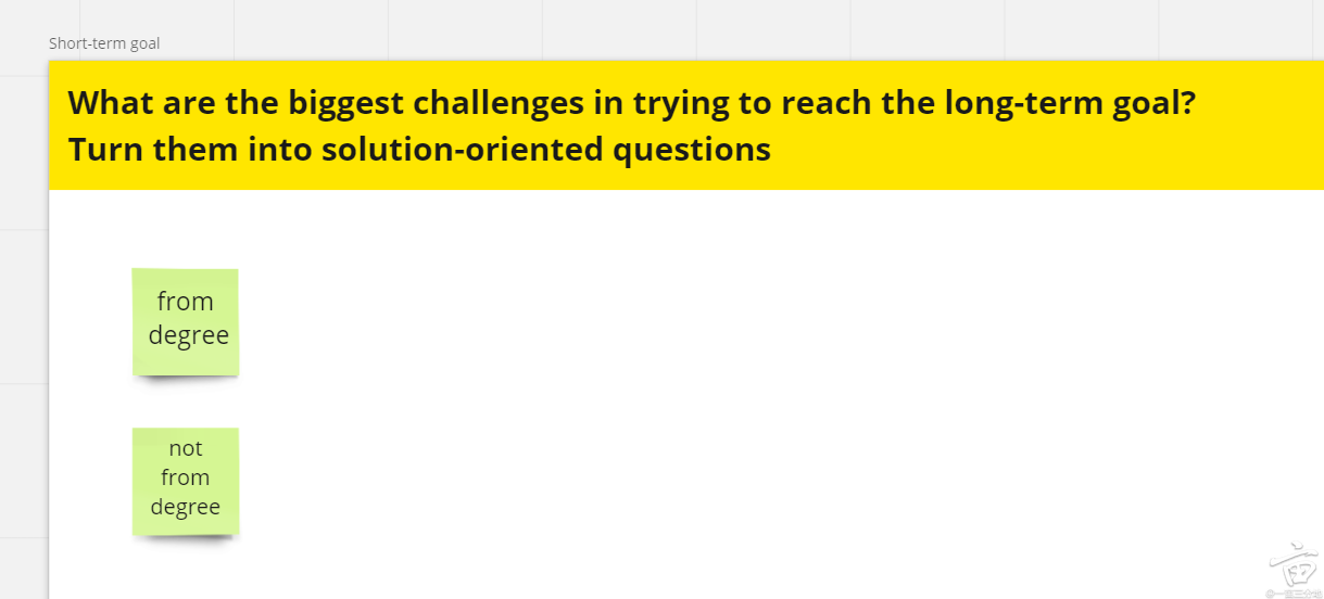 - 关于工作:什么要素是我一定要从工作上获得的?我要赚多少钱?我要工作多久? 我要和人打交道吗? - 追问为什么喜欢?为什么擅长? - 如果发现没有很明确的东西出来,可以尝试去增加输入。 思考“未来的我可能对什么感兴趣?对什么擅长?” 然后转换成一些可以快速试错的行动!! 看相关从业的人在做什么,看一篇文章,读一本书,上一个网课,和几个人聊天。总结你得到的东西。 - 根据以上信息寻找一些结合点,可以有一些大概的想法 不需要完美主义!你写了啥和你五年后真的做啥可能毫!无!关!系! —— 注意这些想法都是在给你动力去行动,而不是需要寻找一个最最完美最最贴合的 Mr.Right, 在行动过程中这些都是会!变!的!生活是动态的,你也是动态的。不要追求静止~ ———————————————————— 5) 短期目标:如果你没有实现五年目标,你觉得主要的障碍是什么?会遇到什么问题? 思考这个长期目标对你来说意味着什么?为什么喜欢? 需要哪些 能力 技能 特质?职业岗位有哪些要求?职业岗位每天在做什么? 这些要求里面你已经擅长的有哪些?有什么你掌握的资源?你对这个计划自信吗?