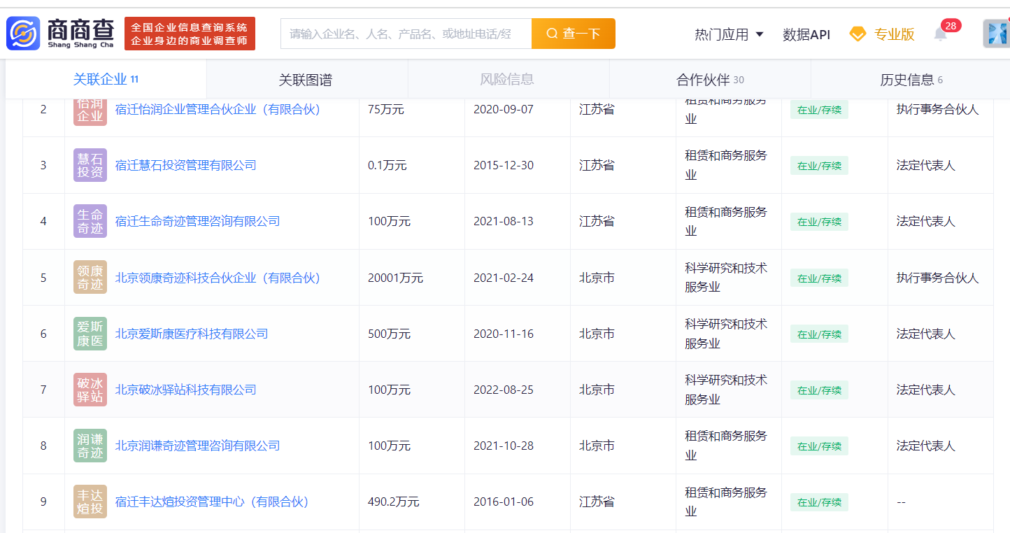 蔡磊自从确诊渐冻症之后就开始全力攻克渐冻症难题、致力于破冰。商商查APP显示,蔡磊共关联11家企业,其中大多为科学研究和技术服务业。