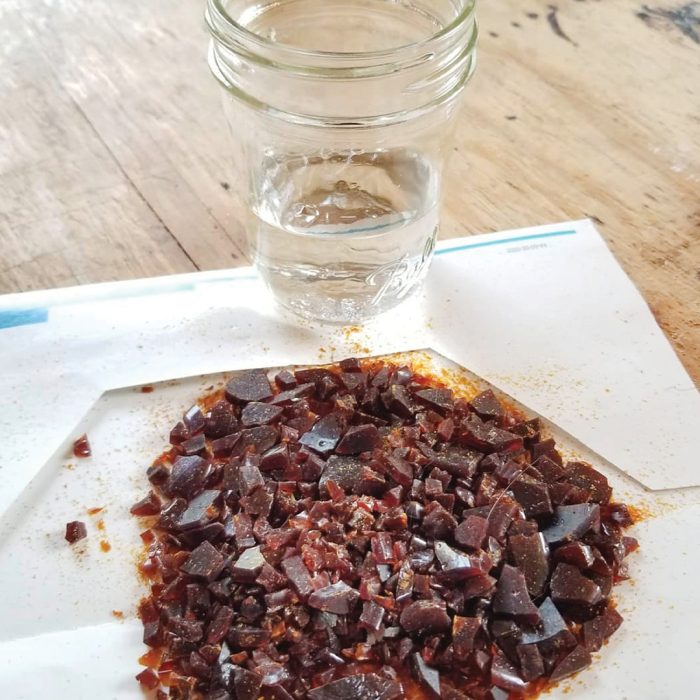 For a thin, forgiving shellac, try a test-sized 1-pound cut. Add about an ounce of shellac flakes or crushed buttons to 3 or 4 ounces of denatured alcohol in a glass container with a screw-on cap. Cover the container and give the mixture a shake every 15 to 30 minutes until it’s fully dissolved. Then strain the mixture through cheesecloth before using.